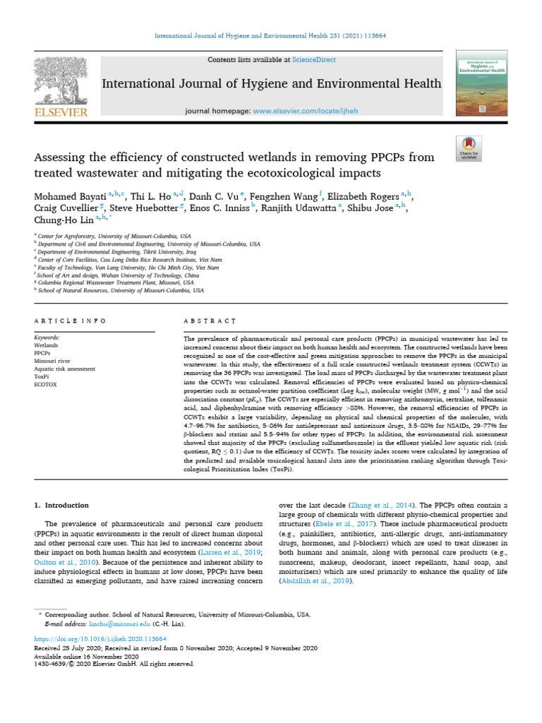 Assessing The Efficiency of Constructed Wetlands in Removing PPCPs ...