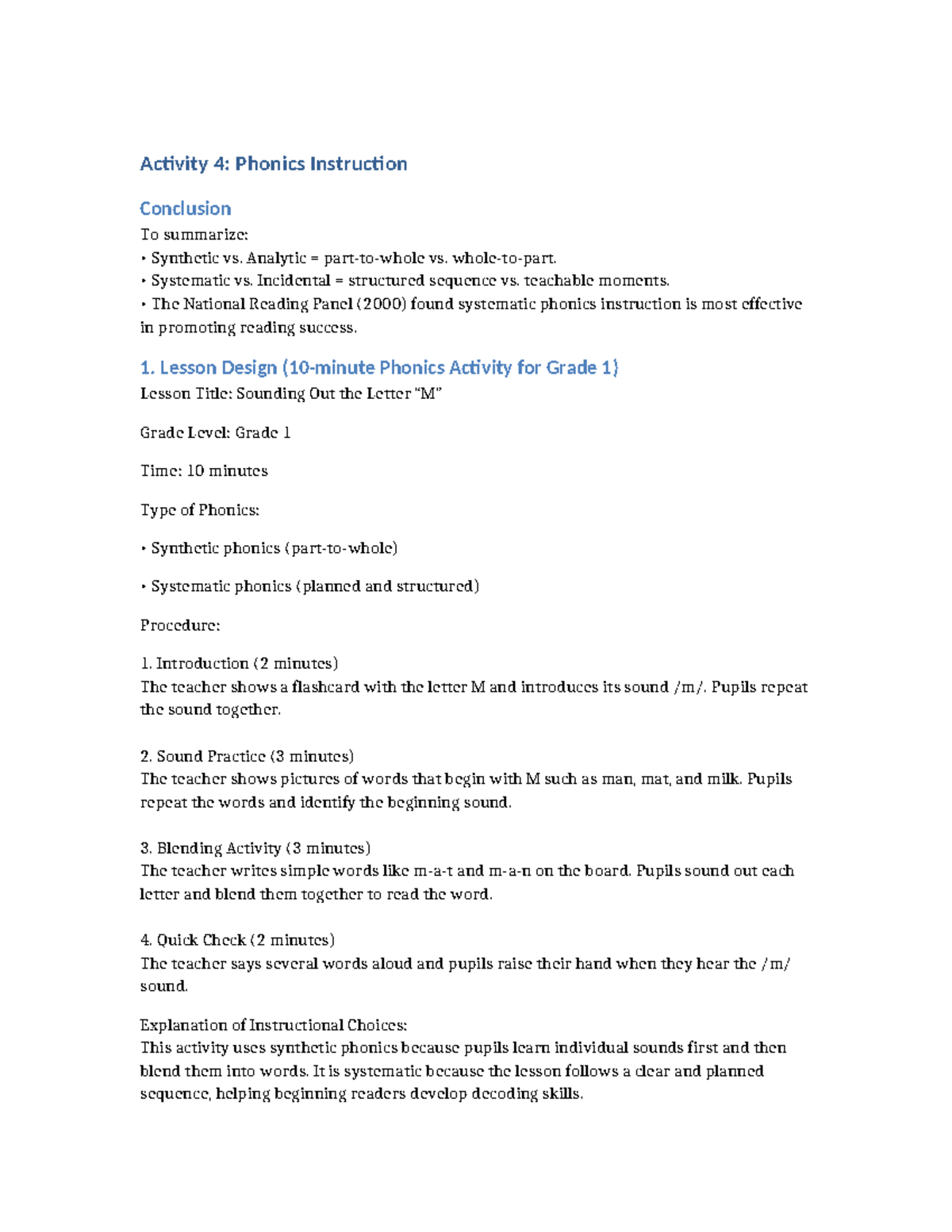 Activity 4: Phonics Instruction - Synthetic vs. Systematic Approaches ...
