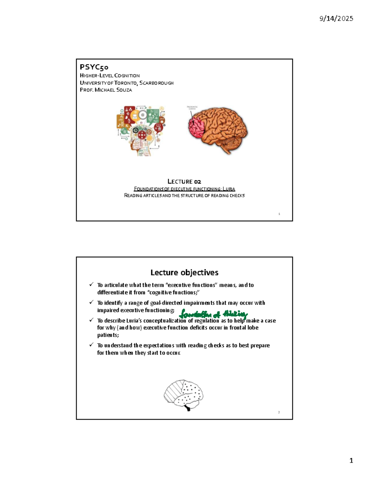 PSYC50 COGNITION: LECTURE 02 - FOUNDATIONS OF EXECUTIVE FUNCTIONING ...