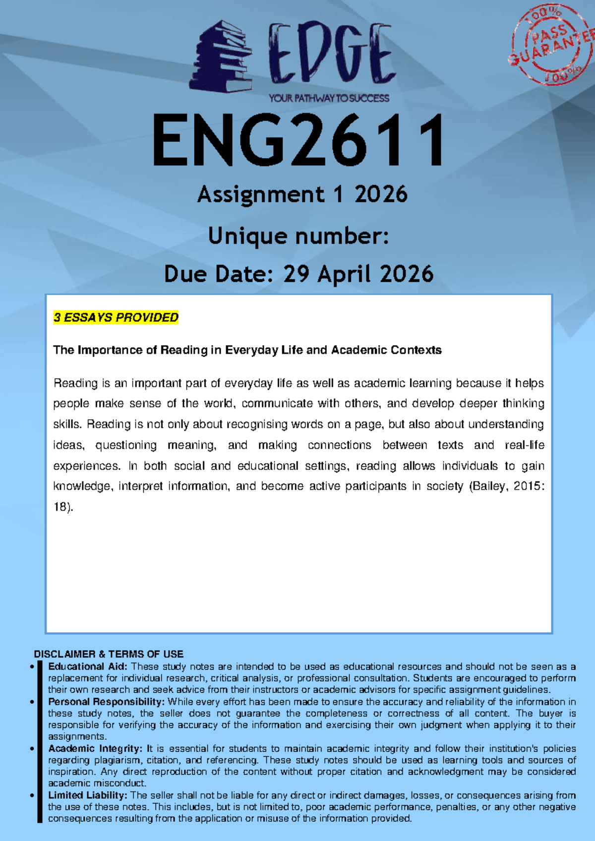 ENG2611 Assignment 1: The Role of Reading in Life & Academia - Studocu