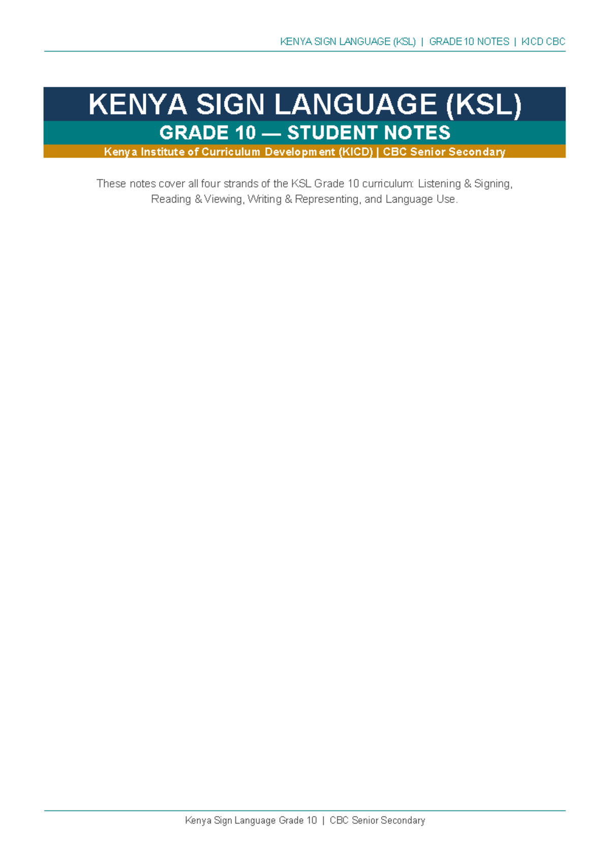 KSL GRADE 10 NOTES: KICD CBC SENIOR SECONDARY STUDY GUIDE - Studocu
