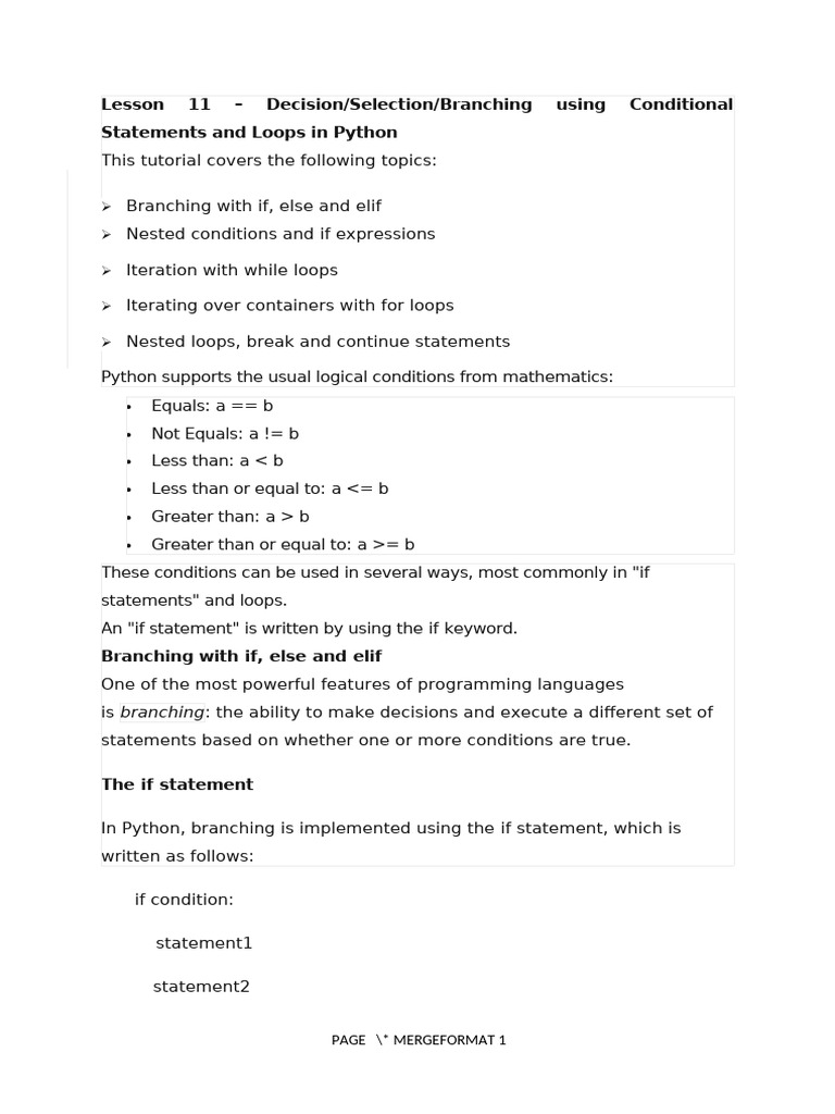 Lecture 2: Conditional Statements & Loops in Python - Studocu
