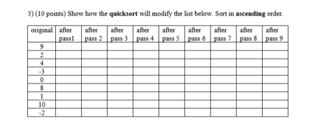 Solved 3) (10 points) Show how the quicksort will modify the | Chegg.com