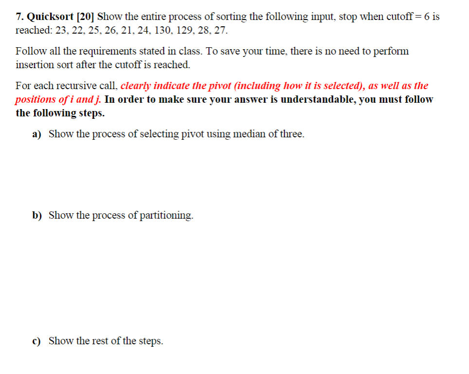 Solved 7. Quicksort [20] Show the entire process of sorting | Chegg.com