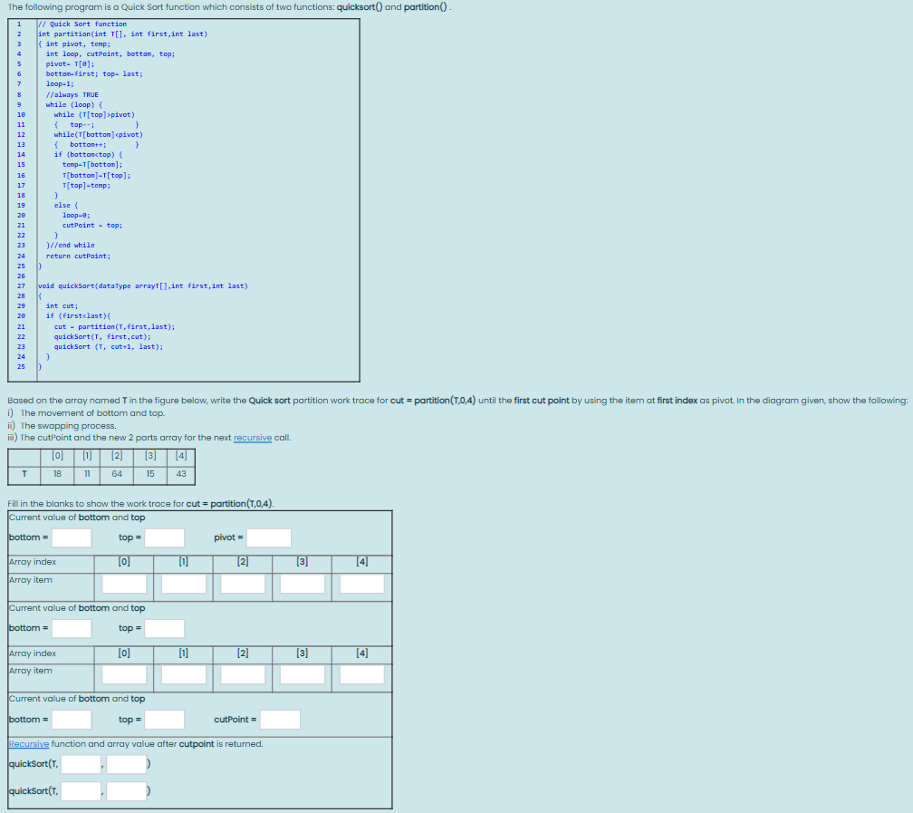 Solved 4 5 6 9 le The following program is a Quick Sort | Chegg.com