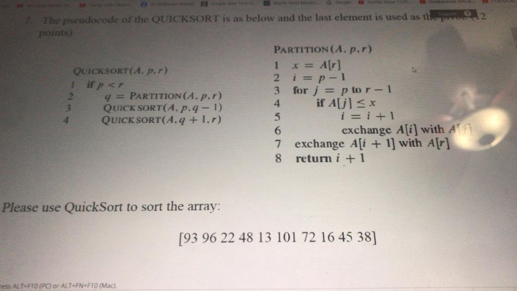 Solved Given pseudocode for QUICKSORT and PARTITION, | Chegg.com
