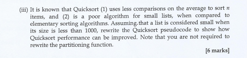 (iii) It is known that Quicksort (1) uses less | Chegg.com