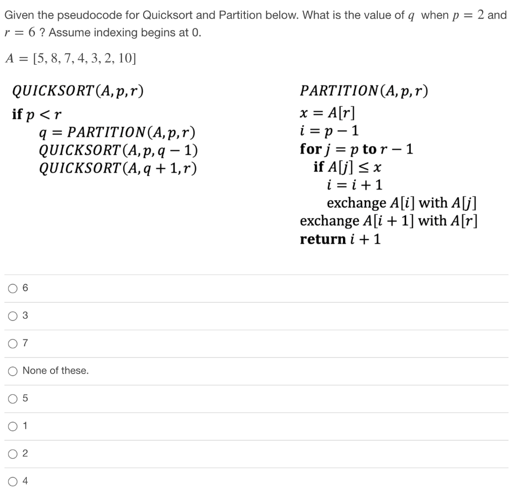 Solved The following is some pseudocode for the quicksort | Chegg.com