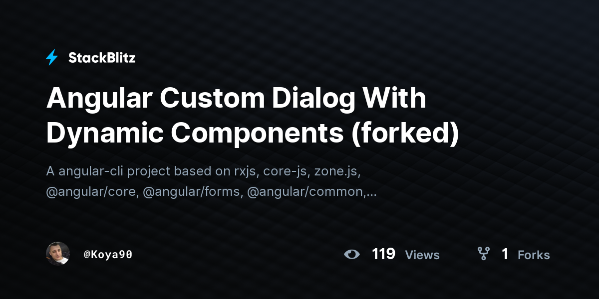 Angular Custom Dialog With Dynamic Components (forked) - StackBlitz