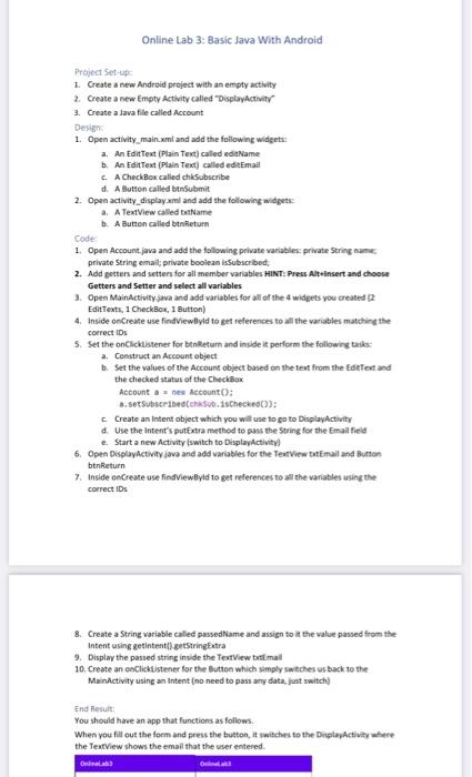 Solved Project Set-up: 1. Creste a new Android project with | Chegg.com