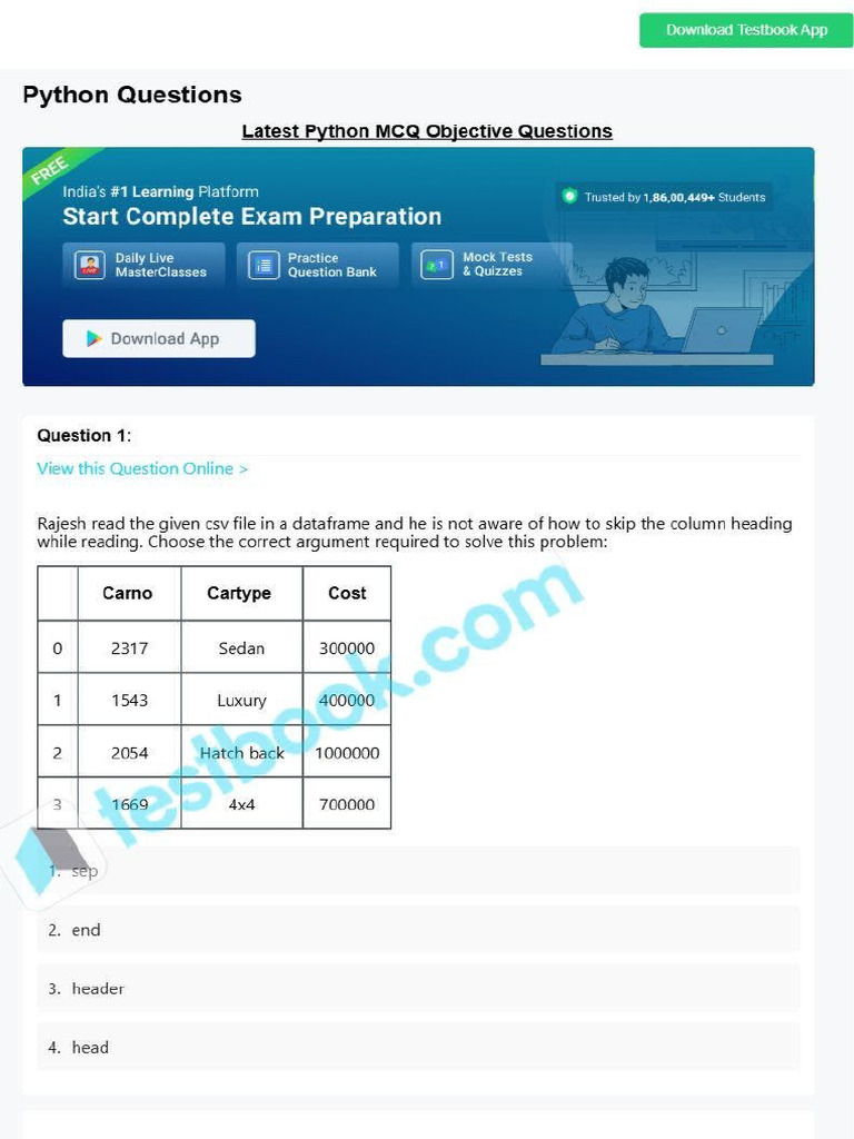 Based on this image's title: “MCQ On Python 5eea6a1139140f30f369ebae | PDF”