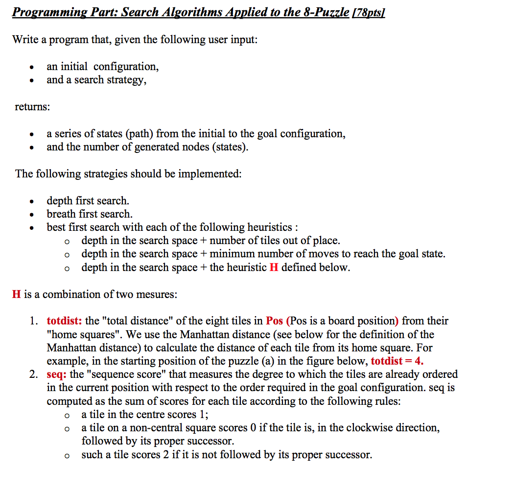 Solved Programming Part: Search Algorithms Applied to the | Chegg.com