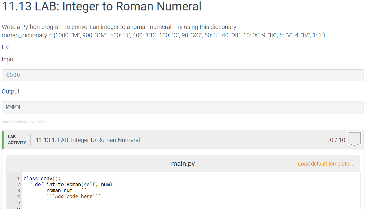 Solved 11.13 LAB: Integer to Roman Numeral Write a Python | Chegg.com