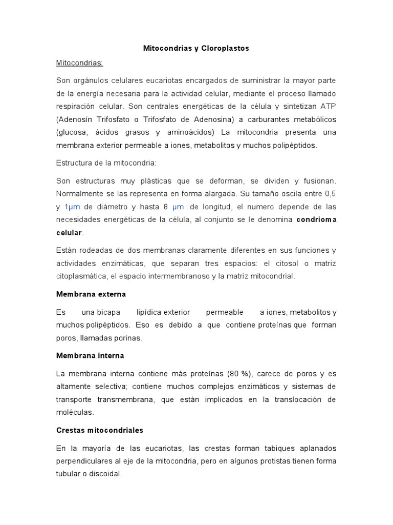 Estructura y funciones de mitocondrias y cloroplastos | PDF ...
