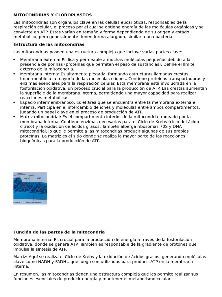 Estructura y Función de Mitocondrias y Cloroplastos | PDF | Mitocondria ...