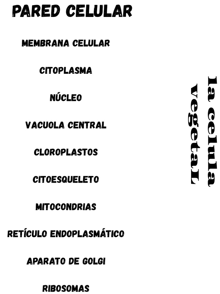 clelula, Núcleo, Mitocondria, Cloroplasto, Lisosomas,Aparato de Golgi ...