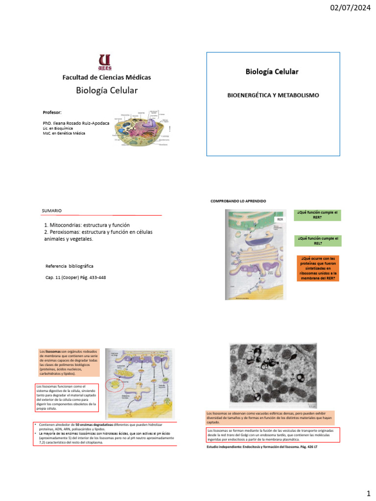 Mitocondrias, Cloroplastos, Peroxisomas - Medicina 2021 | PDF ...