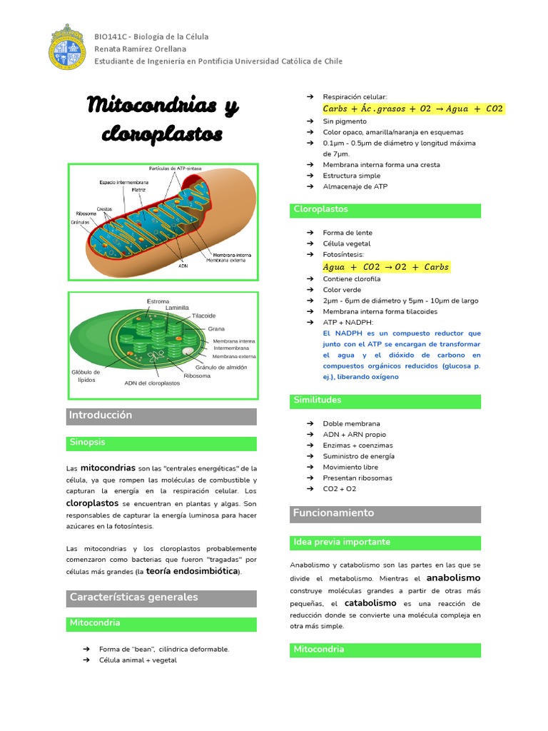 Mitocondrias y cloroplastos | Samantha Shernandez | uDocz