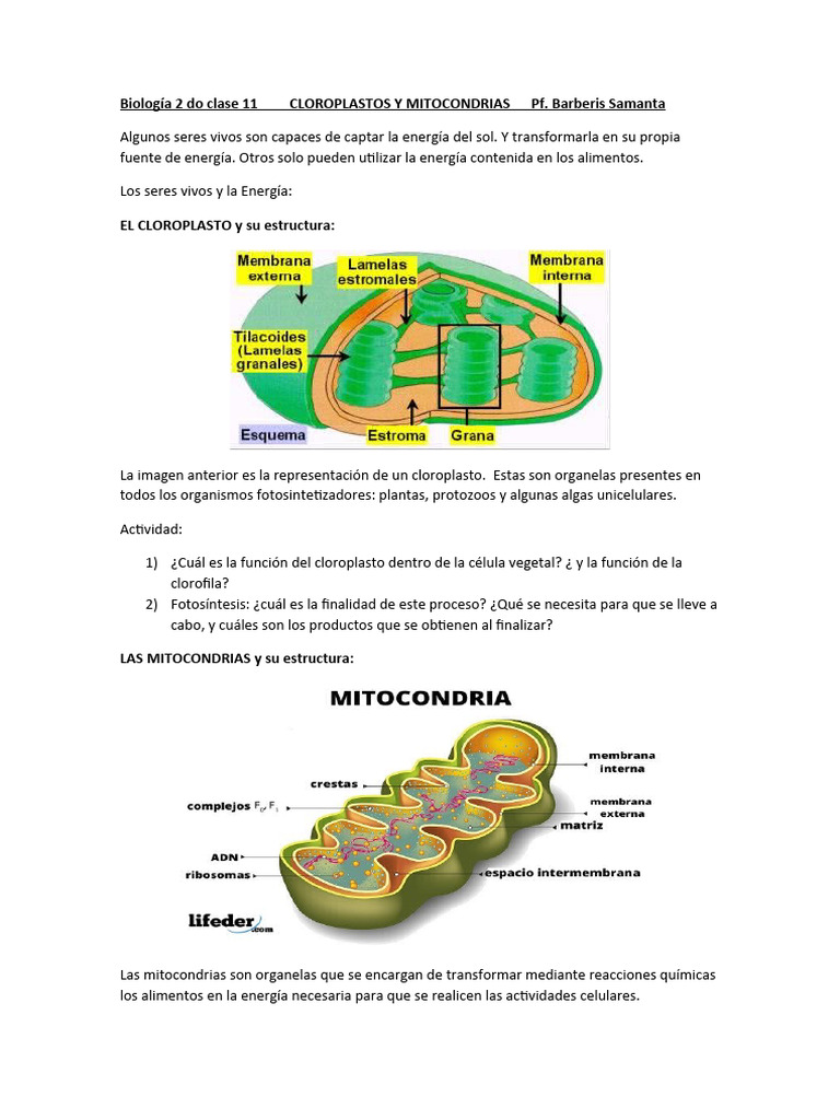 Mitocondrias y Cloroplastos If 4 | PDF | Mitocondria | Cadena de ...