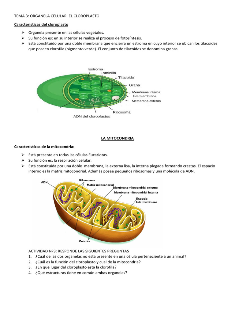 Tema 3 Cloroplasto y Mitocondria | PDF