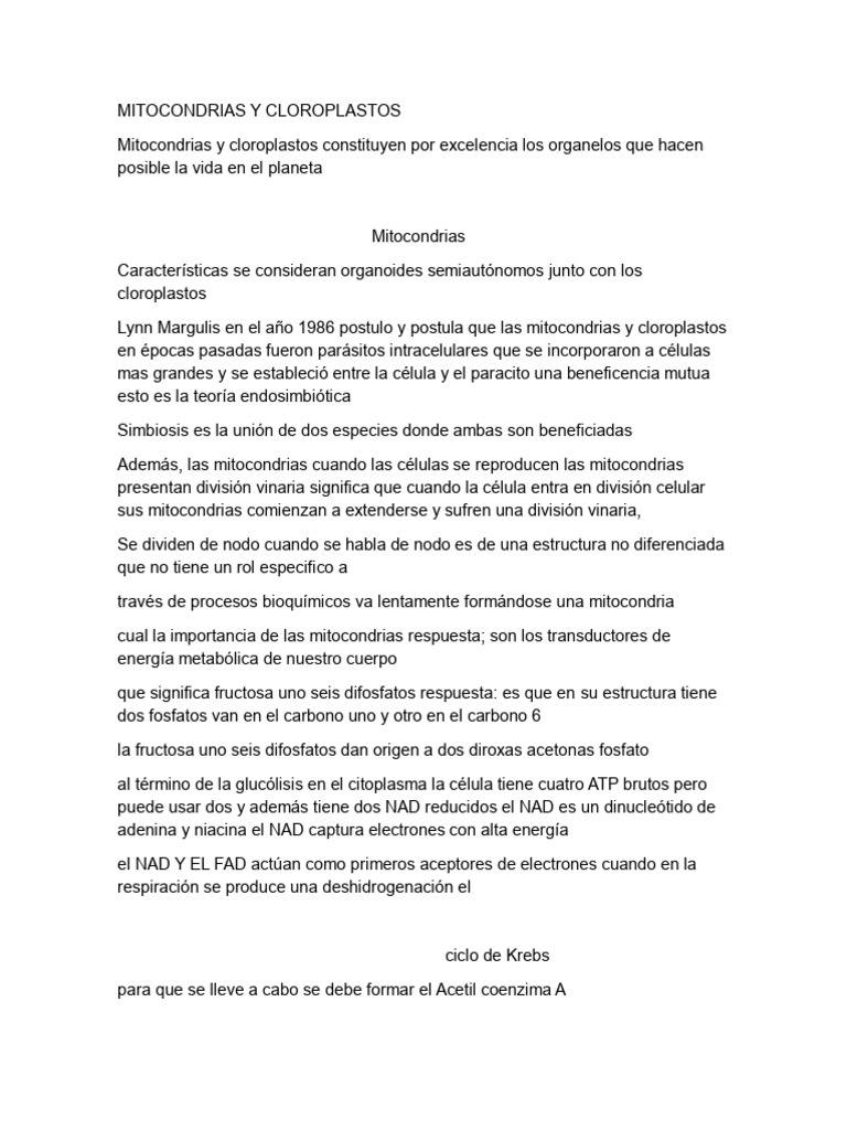 SOLUTION: Mitocondrias y cloroplastos biologia celular - Studypool