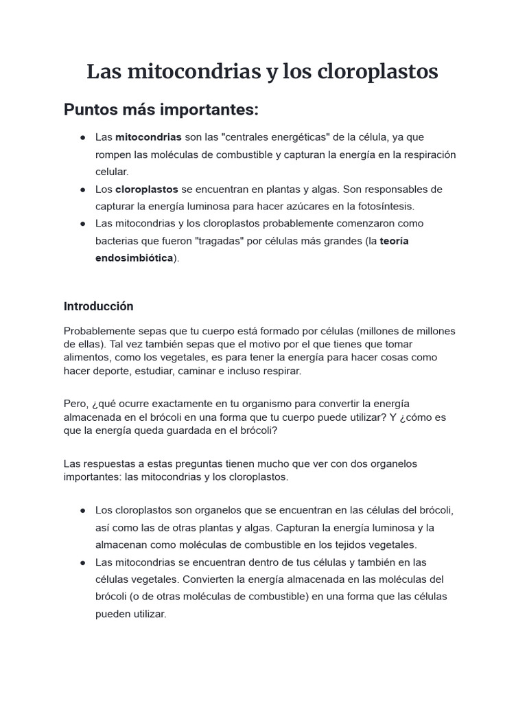 Las Mitocondrias y Los Cloroplastos | PDF | Cloroplasto | Mitocondria