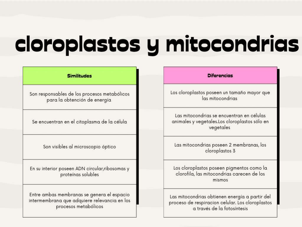 Mitocondrias y Cloroplastos - Esquema que diferencie las mitocondrias y ...