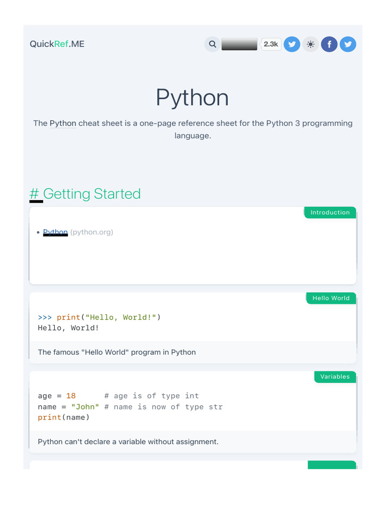 Learn Python with this cheat sheet » TechWorm