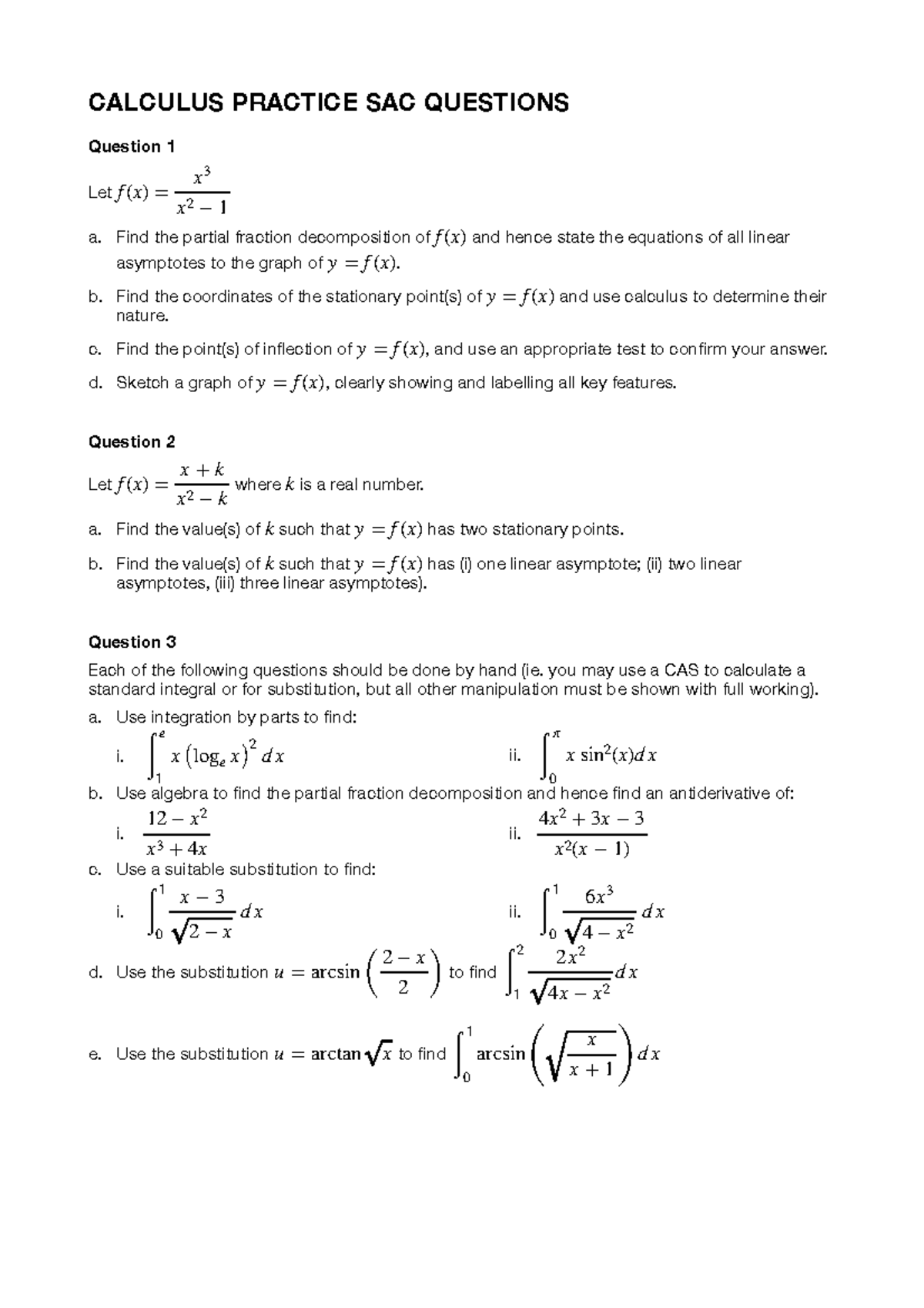 CALCULUS SAC02 PRACTICE QUESTIONS: Asymptotes, Derivatives & Integrals ...