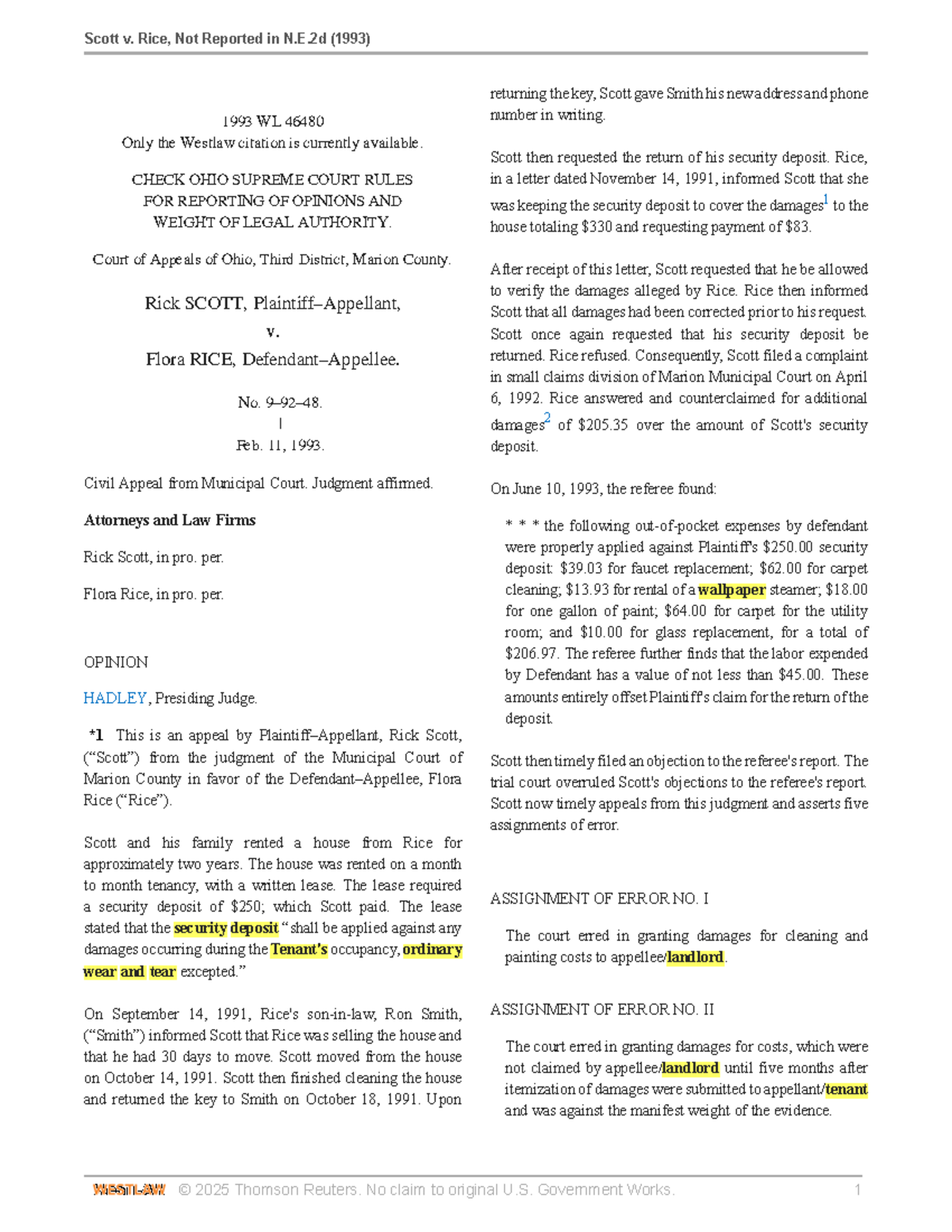 Scott v. Rice: Ohio Civil Appeal Case Analysis (1993) - Studocu