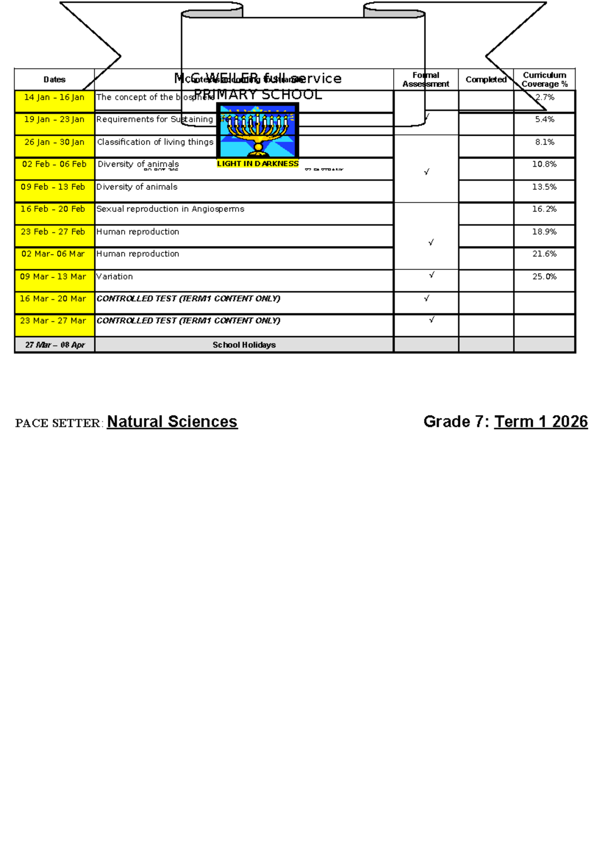 Natural Sciences Grade 7: Term 1 PACE Setter 2026 Overview - Studocu