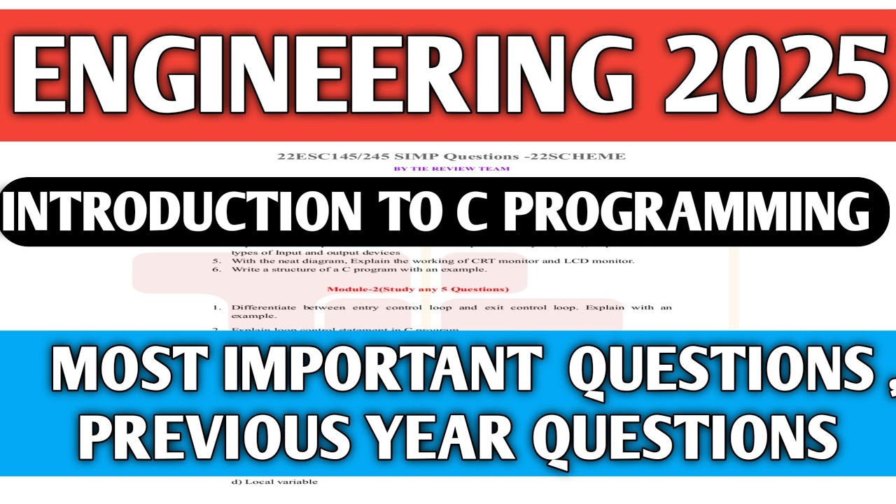 MOST IMPORTANT QUESTIONS|INTRODUCTION TO C PROGRAMMING 1 & 2ND YEAR VTU ...
