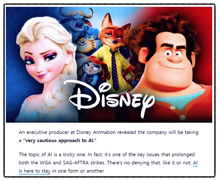 디즈니 애니메이션 영화는 AI 인공지능 사용에 매우 신중히 접근중이다 : 네이버 블로그