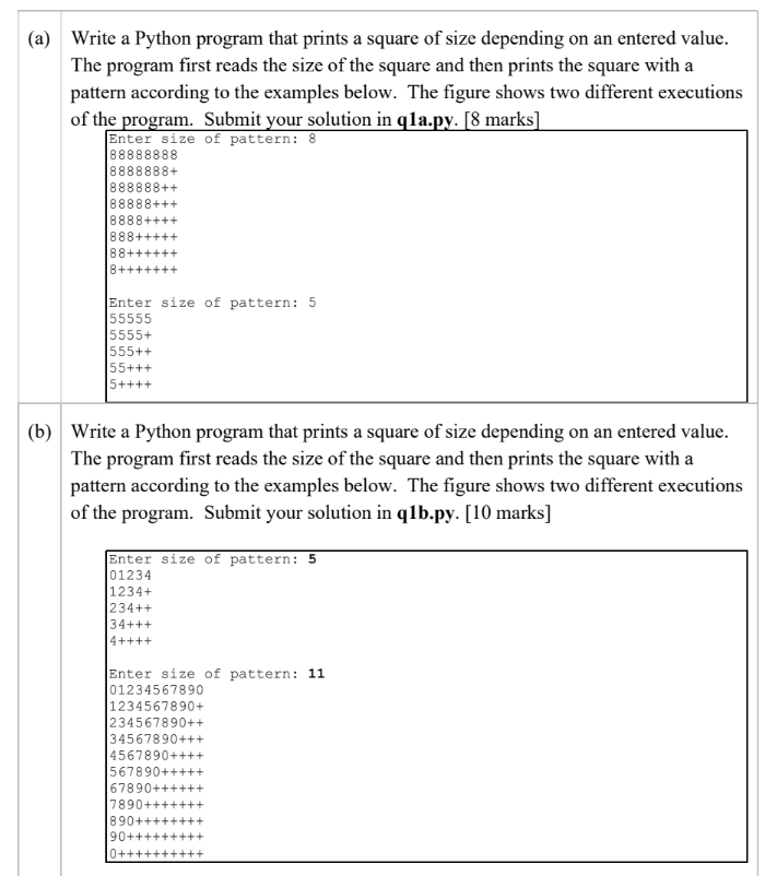 (Solved) - (a) Write a Python program that prints a square of size ...