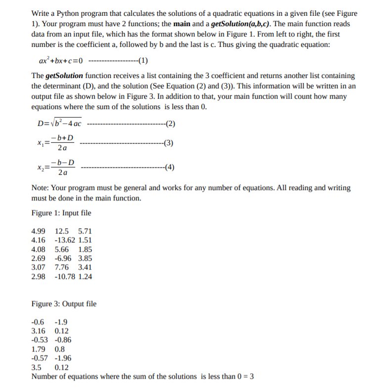 Solved Question 3. Write a Python program to solve quadratic | Chegg.com
