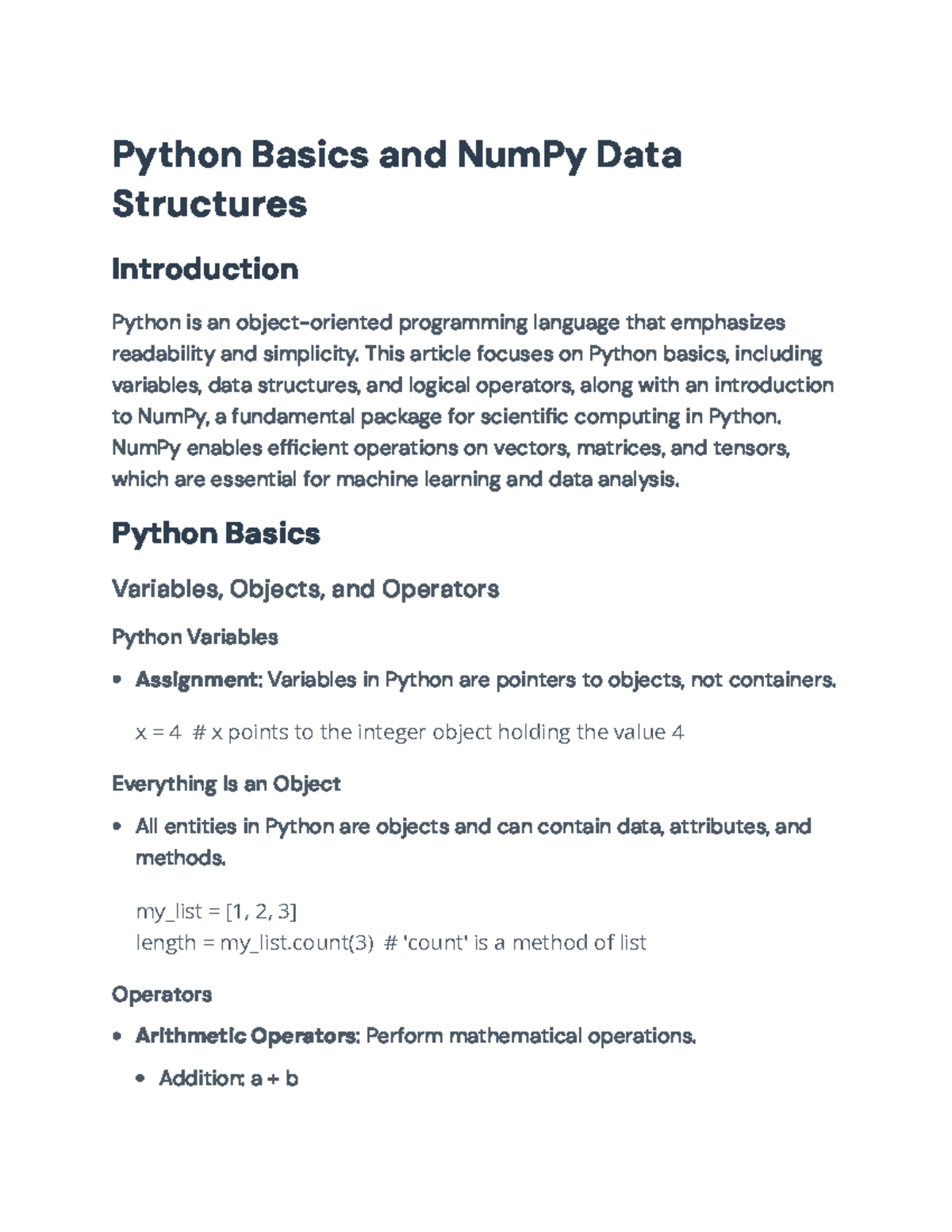 Introduction to Python Basics and NumPy for Scientific Computing ...