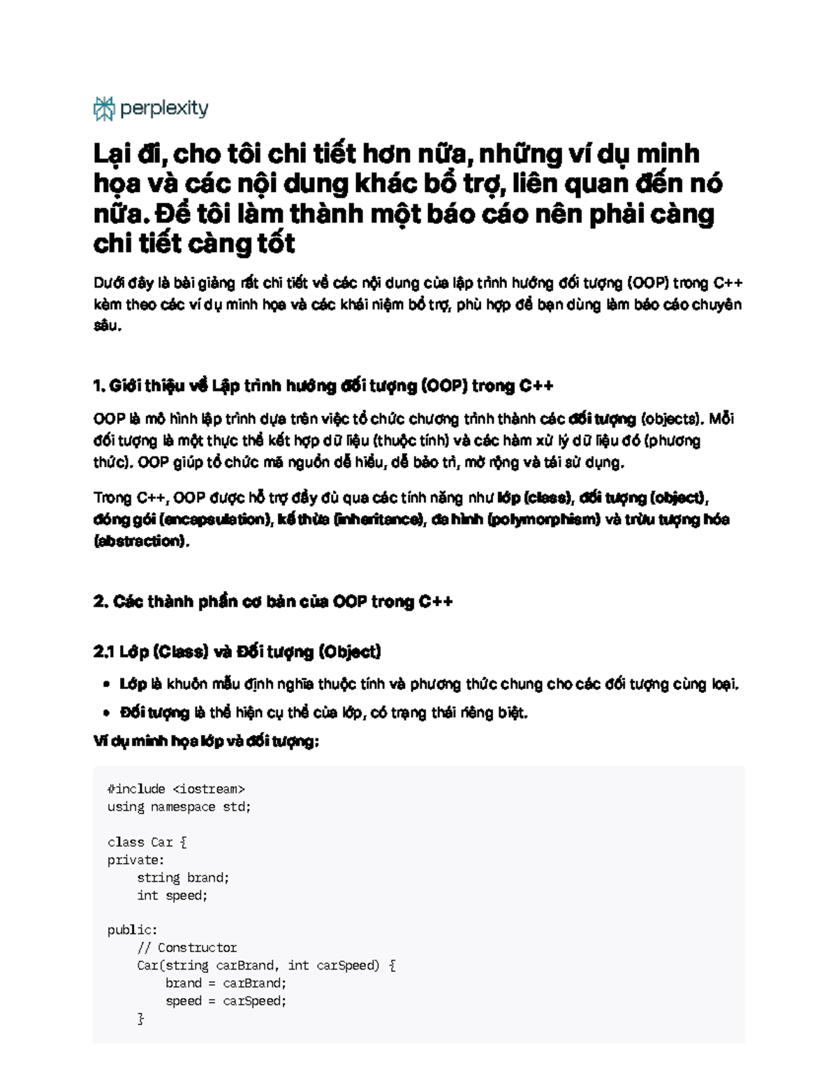 OOP C++ - Chi tiết về Lập trình Hướng Đối Tượng và Ví dụ Minh Họa - Studocu