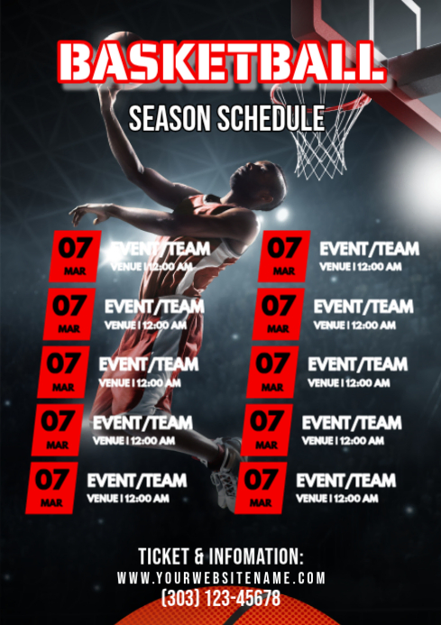 Copy of Black Modern & Minimal Basketball Season Schedule A4 | PosterMyWall