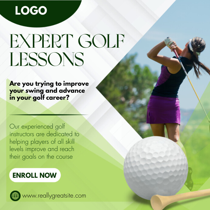 Copy of Green and White Modern Golf Lessons Instagram | PosterMyWall