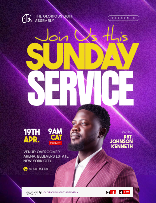 Copy of Purple Professional Sunday Worship Service Flyer | PosterMyWall
