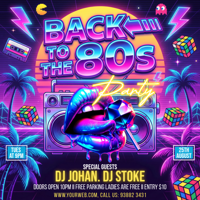 Copy of Purple Neon 80s Party Instagram Post | PosterMyWall