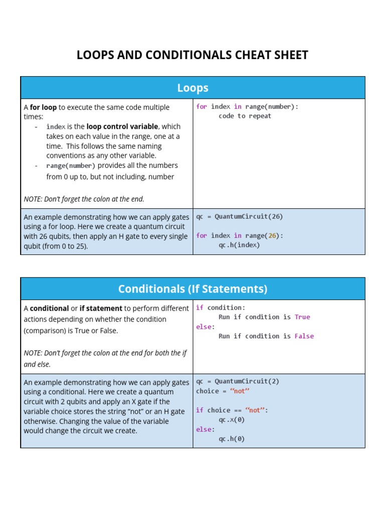 Loops and Conditionals Cheat Sheet | PDF