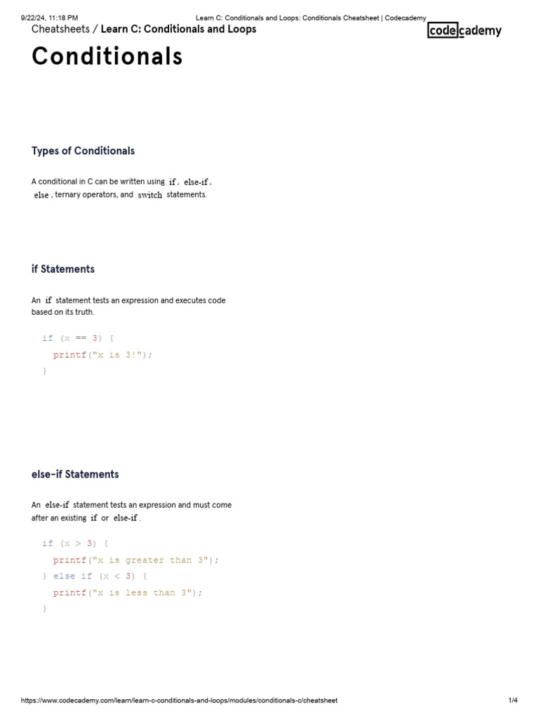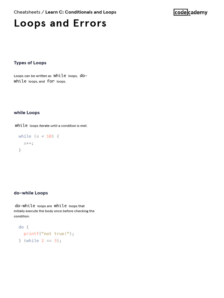 Learn C - Conditionals and Loops - Conditionals Cheatsheet - Codecademy ...