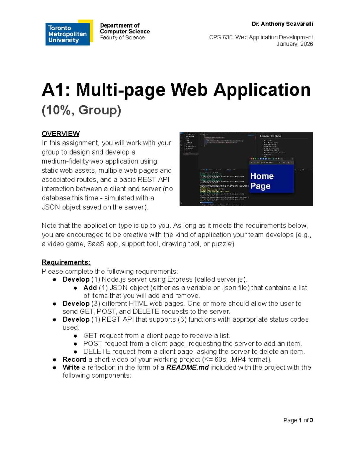 CPS 630: A1 - Group Project on Multipage Web Application Development ...