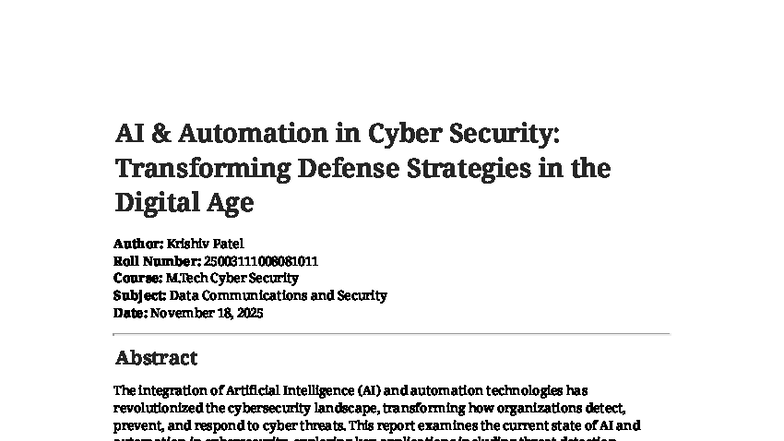 AI Automation in Cyber Security: Transforming Defense Strategies (M ...