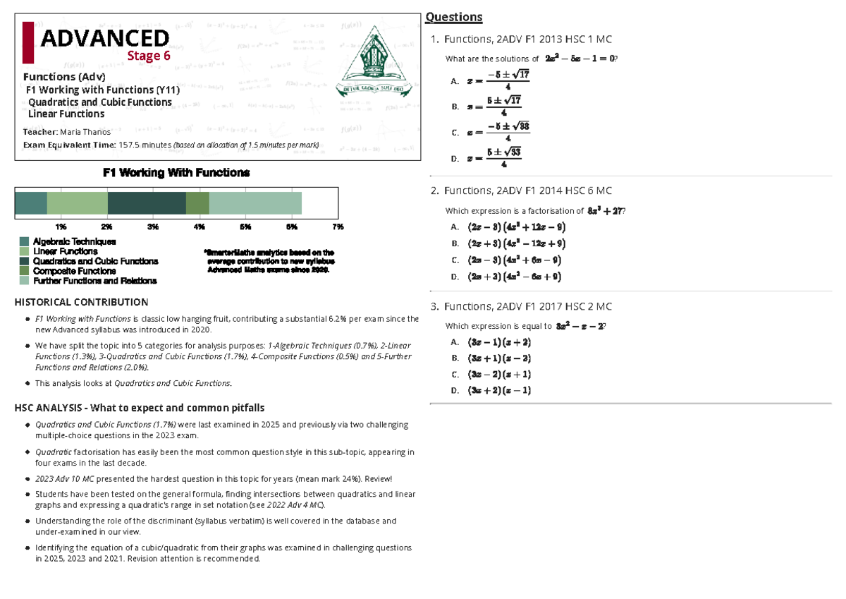 Functions and Their Applications: 11MA Linear, Quadratics & Cubics ...
