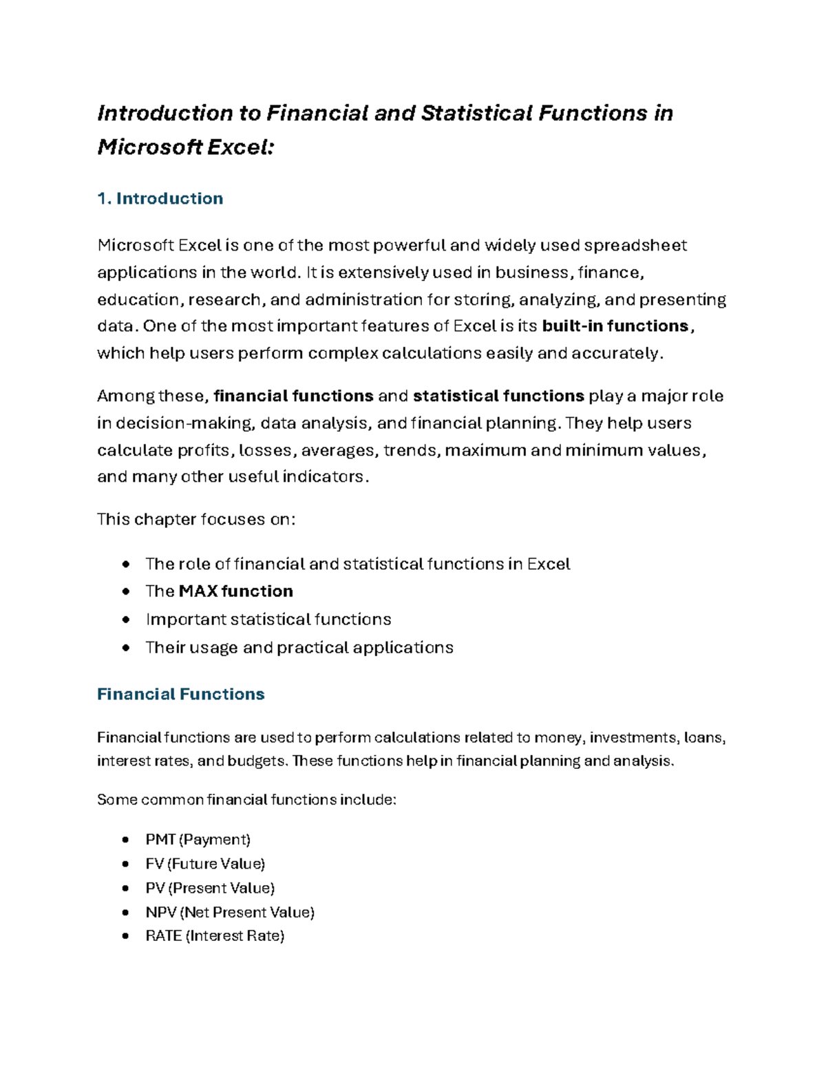 Excel Functions for Finance & Statistics: A Comprehensive Guide (FIN ...
