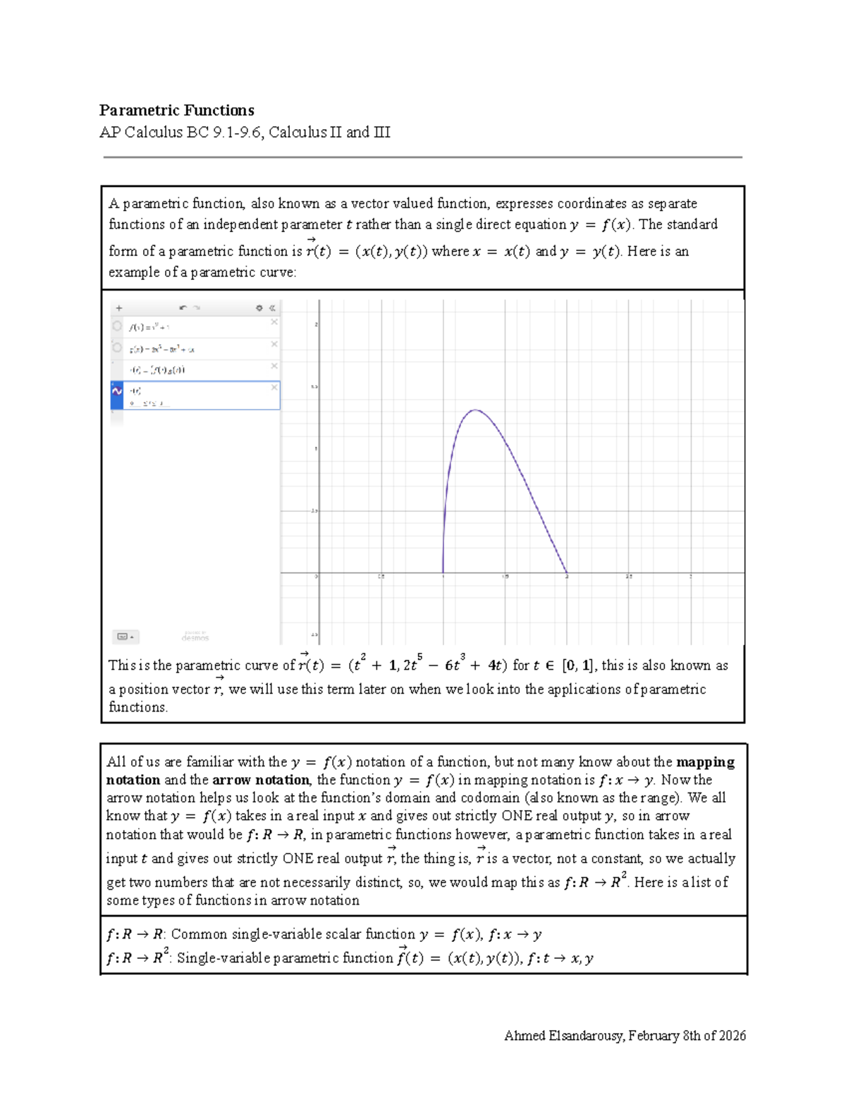 Parametric Functions in AP Calculus BC: A Comprehensive Guide - Studocu