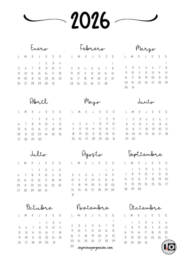 Recopilatorio Calendarios 2026 - Imagenes Educativas