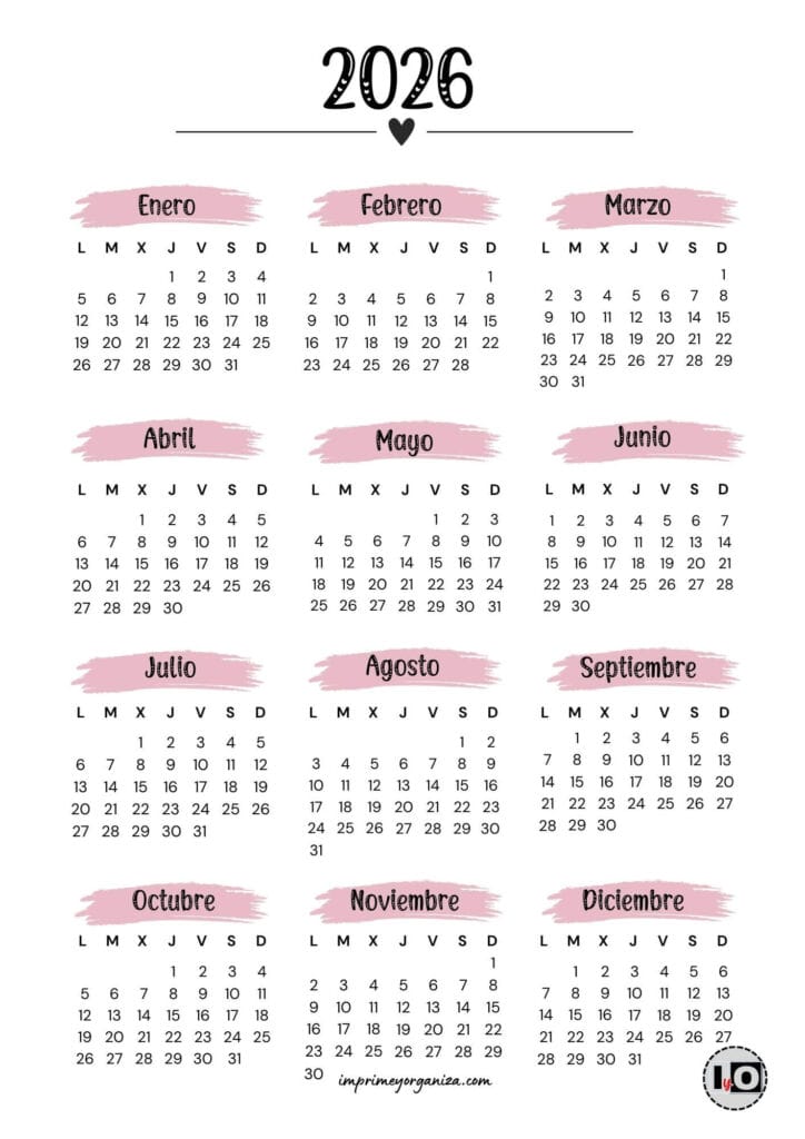 Calendarios Anuales 2026 en PDF [GRATIS]